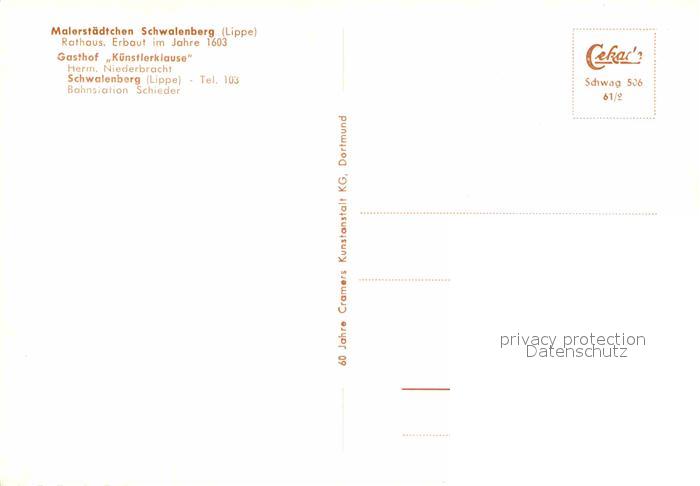 72905874 Schwalenberg Gasthof Kuenstlerklause postalisch nicht gelaufen Erhaltung siehe scans [AndreD76] KatCode: 11110005766060