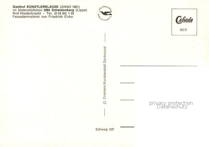 73167217 Schwalenberg Gasthof Kuenstlerklause anno 1801 Fassadenmalerei von Friedrich Eicke Historisches Gebaeude postalisch nicht gelaufen Erhaltung siehe scans [FriedD77] KatCode: 11110005766060