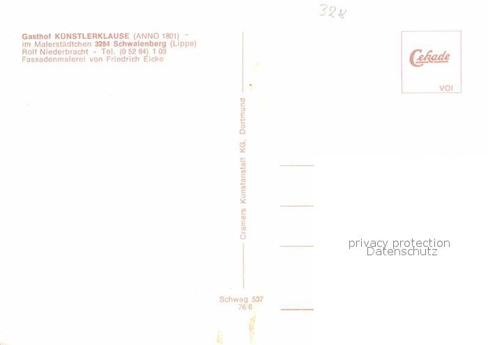 72614805 Schwalenberg Gasthof Kuenstlerklause Fassadenmalerei postalisch nicht gelaufen Erhaltung siehe scans [WerneD78] KatCode: 11110005766060