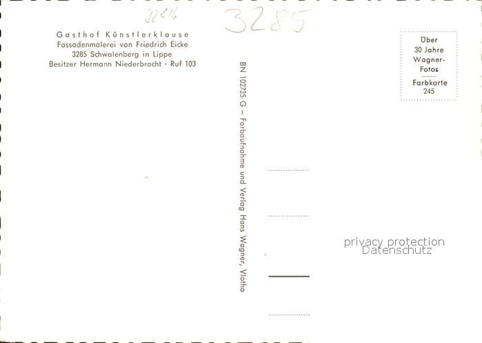 71946563 Schwalenberg Gasthof Kuenstlerklause Fassadenmalerei postalisch nicht gelaufen Erhaltung siehe scans KatCode: 11110005766060