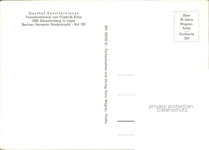 72560507 Schwalenberg Gasthof Kuenstlerklause Fassadenmalerei Friedrich Eicke postalisch nicht gelaufen Erhaltung siehe scans [AntonD74] KatCode: 11110005766060
