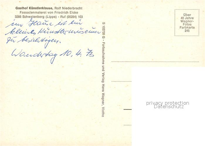 73072524 Schwalenberg Gasthof Kuenstlerklause mit Fassadenmalerei postalisch nicht gelaufen Erhaltung siehe scans [WerneD78] KatCode: 11110005766060