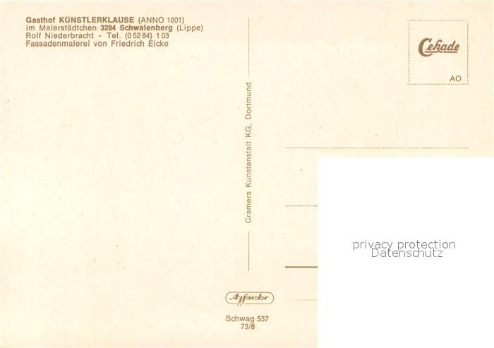 73685442 Schwalenberg Gasthof Kuenstlerklause postalisch nicht gelaufen Erhaltung siehe scans [WerneD78] KatCode: 11110005766060