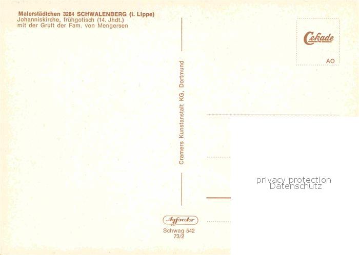 72905876 Schwalenberg Johanniskirche mit der Gruft der Familien Mengersen postalisch nicht gelaufen Erhaltung siehe scans [AndreD76] KatCode: 11110005766060