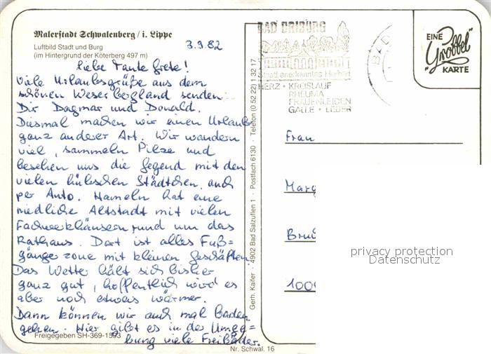 72696849 alte Postkarte Schwalenberg Luftaufnahme Koeterburg postalisch gelaufen Erhaltung siehe scans [KathaD79] KatCode: 11110005766060