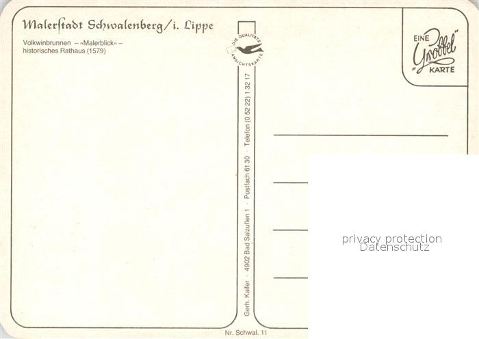 73268021 Schwalenberg Malerkasten Rathaus Volkwinbrunnen postalisch nicht gelaufen Erhaltung siehe scans [LiesaD40] KatCode: 11110005766060