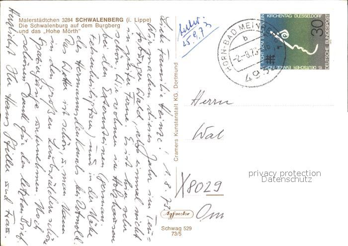 72373540 alte Postkarte Schwalenberg Malerstaedtschen Schwalenburg Burgberg Hohe Moerth postalisch gelaufen Erhaltung siehe scans KatCode: 11110005766060