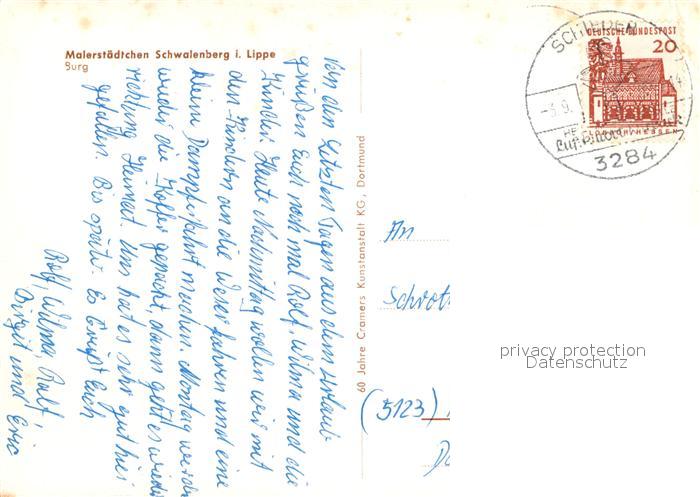 72925397 alte Postkarte Schwalenberg Ortsmotiv mit Burg Fachwerkhaeuser postalisch gelaufen Erhaltung siehe scans [FriedD77] KatCode: 11110005766060