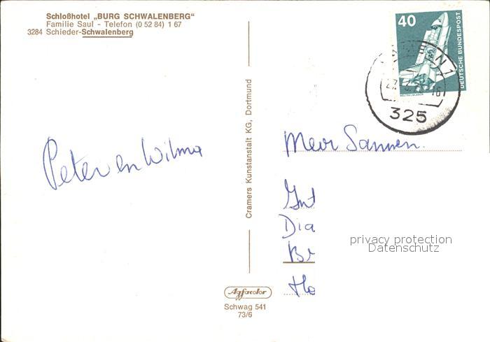 72304155 alte Postkarte Schwalenberg Schlosshotel Burg Schwalenberg postalisch gelaufen Erhaltung siehe scans KatCode: 11110005766060
