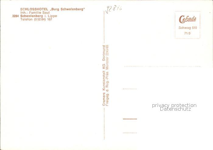 71952367 Schwalenberg Schlosshotel Burg Schwalenberg postalisch nicht gelaufen Erhaltung siehe scans KatCode: 11110005766060