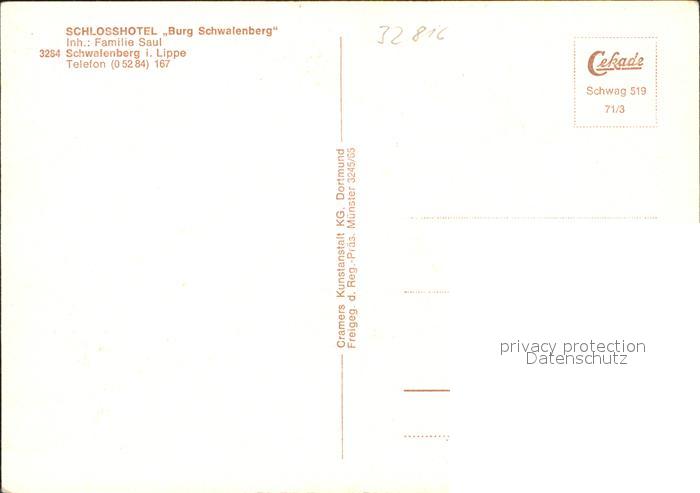 71952335 Schwalenberg Schlosshotel Burg Schwalenberg postalisch nicht gelaufen Erhaltung siehe scans KatCode: 11110005766060