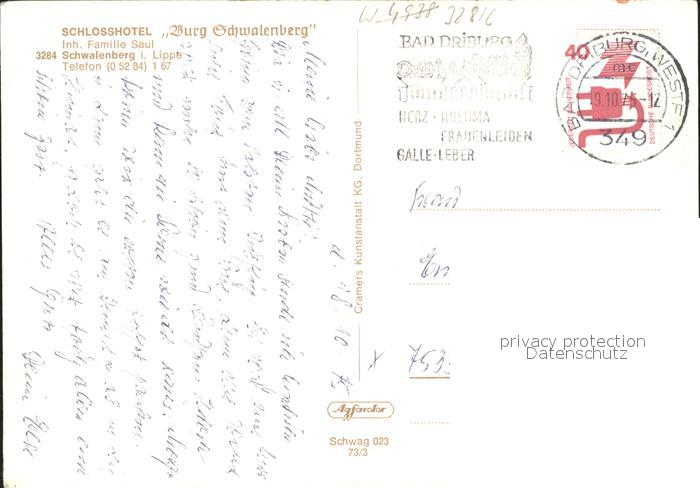 71946564 alte Postkarte Schwalenberg Schlosshotel Burg Schwalenberg postalisch gelaufen Erhaltung siehe scans KatCode: 11110005766060