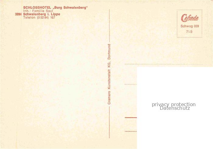 74043536 Schwalenberg Schlosshotel Burg Schwalenberg Restaurant postalisch nicht gelaufen Erhaltung siehe scans [FriedD77] KatCode: 11110005766060