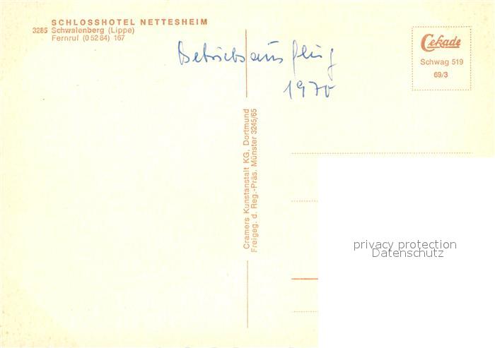 72971327 Schwalenberg Schlosshotel Nettesheim postalisch nicht gelaufen Erhaltung siehe scans [PaolaD17] KatCode: 11110005766060