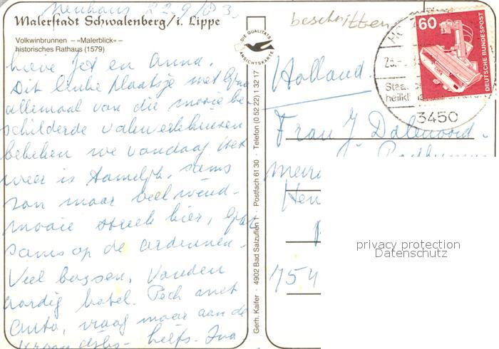 72930024 alte Postkarte Schwalenberg Volkwinbrunnen Malerblick Rathaus postalisch gelaufen Erhaltung siehe scans [WerneD78] KatCode: 11110005766060