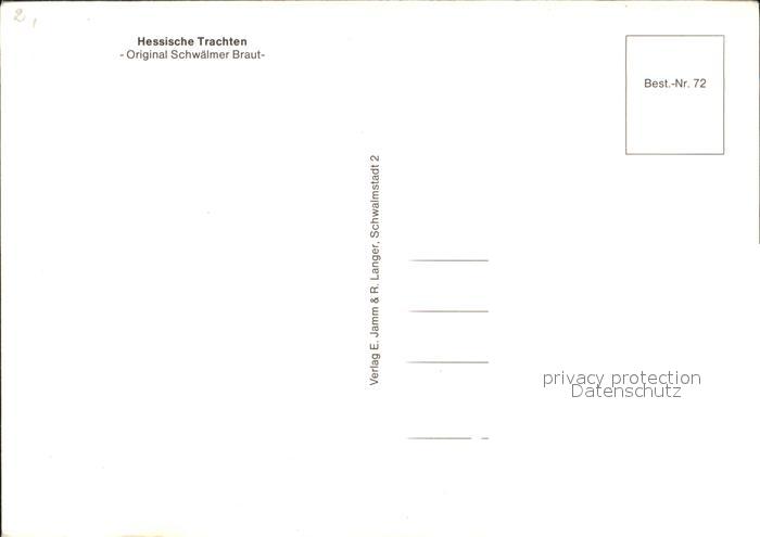 72102533 Schwalmstadt Hessische Tracht Schwaelmer Braut postalisch nicht gelaufen Erhaltung siehe scans KatCode: 11110006634022