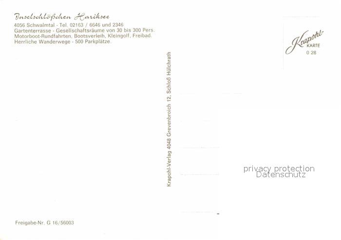 72715589 Schwalmtal Niederrhein Inselschloesschen Hariksee Fliegeraufnahme postalisch nicht gelaufen Erhaltung siehe scans [FriedD77] KatCode: 11110005166024