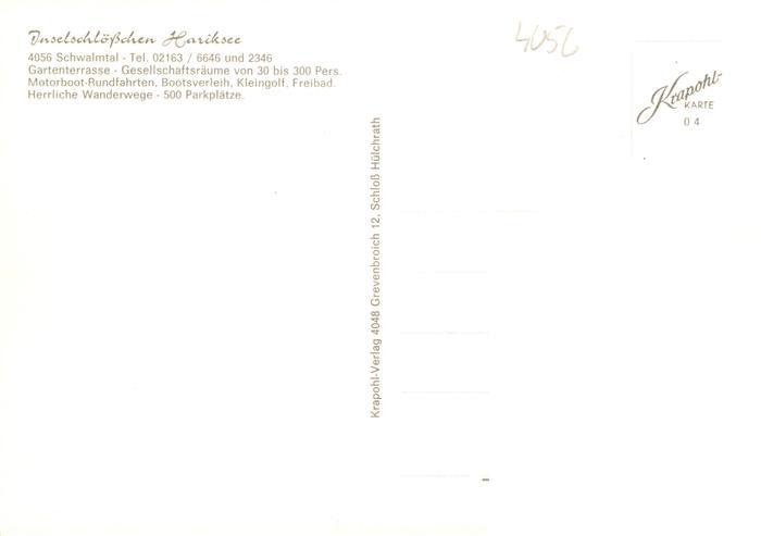 73943583 Schwalmtal Niederrhein Inselschloesschen Hariksee postalisch nicht gelaufen Erhaltung siehe scans [FriedD77] KatCode: 11110005166024
