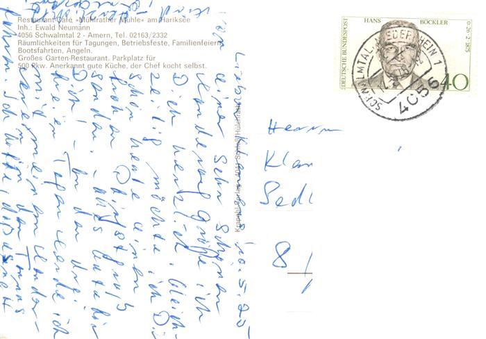 73883972 alte Postkarte Schwalmtal Niederrhein Muehlrather Muehle am Hariksee Fliegeraufnahme postalisch gelaufen Erhaltung siehe scans [WerneD78] KatCode: 11110005166024