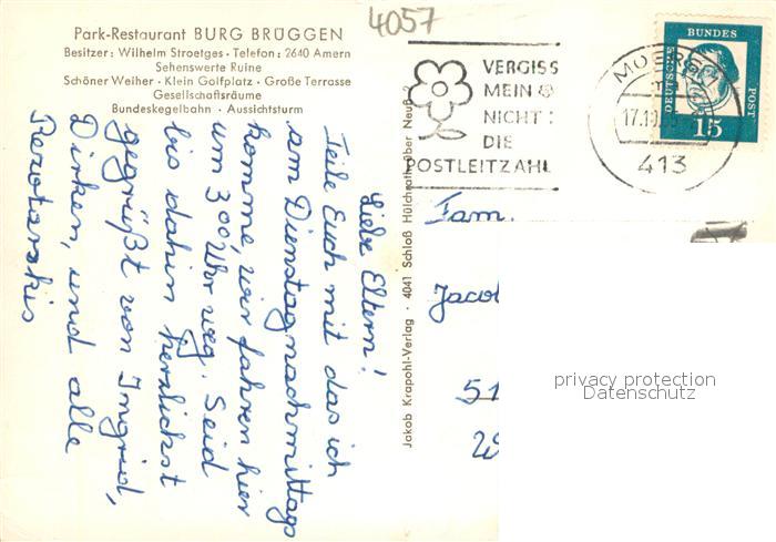73697389 alte Postkarte Schwalmtal Niederrhein Park- Restaurant Burg Brueggen postalisch gelaufen Erhaltung siehe scans [LiesaD40] KatCode: 11110005166024
