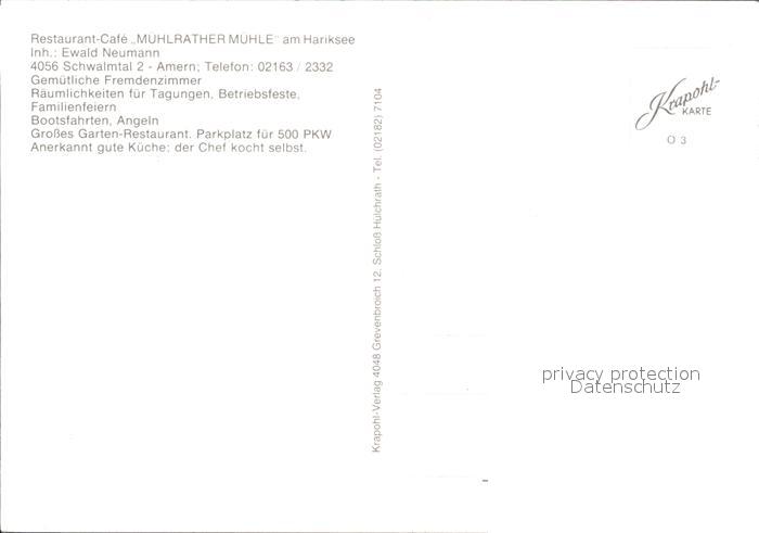 71933093 Schwalmtal Niederrhein Restaurant Muhlrathermuehle postalisch nicht gelaufen Erhaltung siehe scans KatCode: 11110005166024