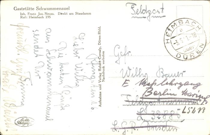 41379649 Schwammenauel Gaststätte am Rursee Terrasse Feldpost KatCode 11110