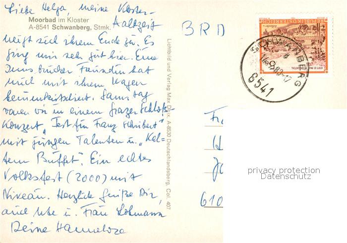 73649417 alte Postkarte Schwanberg Panorama Moorbad im Kloster Schwanberg Gastraeume postalisch gelaufen Erhaltung siehe scans [WerneD78] KatCode: 11390225060331