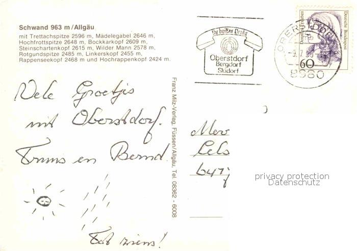 72857215 alte Postkarte Schwand Oberstdorf Trettachspitze Maedelegabel Hochfrottspitze postalisch gelaufen Erhaltung siehe scans [NatalD47] KatCode: 11110009780133