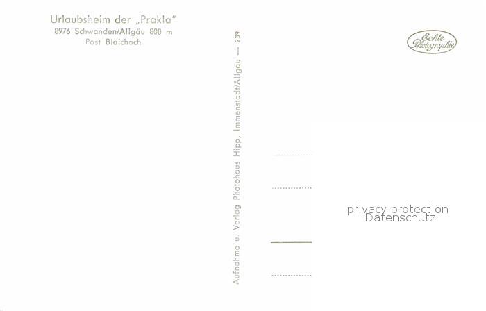 72876342 Schwanden Blaichach Urlaubsheim der Prakla postalisch nicht gelaufen Erhaltung siehe scans [AndreD76] KatCode: 11110009780115