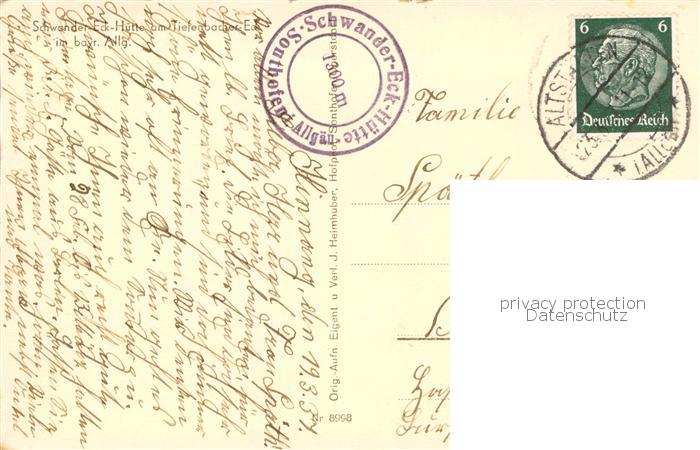 73820315 Schwander-Eck-Huette Sonthofen Oberallgaeu Ansicht postalisch gelaufen Erhaltung siehe scans [FriedD77] alte Postkarte Frie Katcode 11110009780139