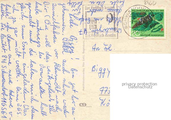 74050470 alte Postkarte Schwandorf Naabpartie Kirche Marienmuenster Schwimmbad Gesamtansicht Marktplatz postalisch gelaufen Erhaltung siehe scans [WerneD78] KatCode: 11110009376161