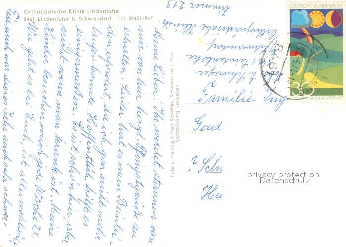 73647749 alte Postkarte Schwandorf Orthopaedische Klinik Lindenlohe postalisch gelaufen Erhaltung siehe scans [WerneD78] KatCode: 11110009376161