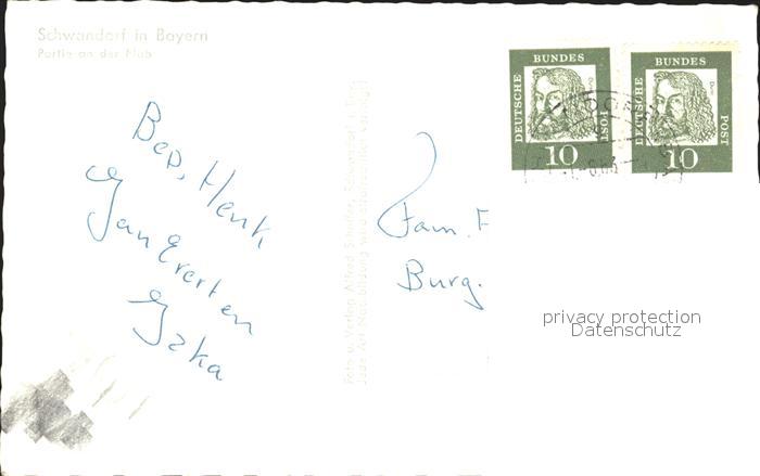 72374926 alte Postkarte Schwandorf Partie an der Naab mit Blick zur Kirche postalisch gelaufen Erhaltung siehe scans KatCode: 11110009376161