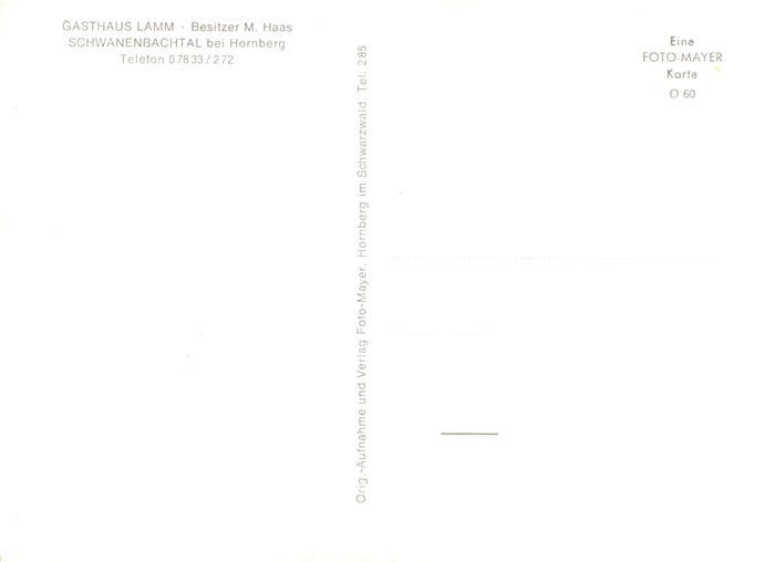 73869997 Schwanenbachtal Hornberg Schwarzwald Gasthaus zum Lamm Gastraum Felspartie in Igelloch Schwarzwaelderin Blick von den Igellochfelsen zum Lam postalisch nicht gelaufen Erhaltung siehe scans [FriedD77] Frie Katcode 11110008317051
