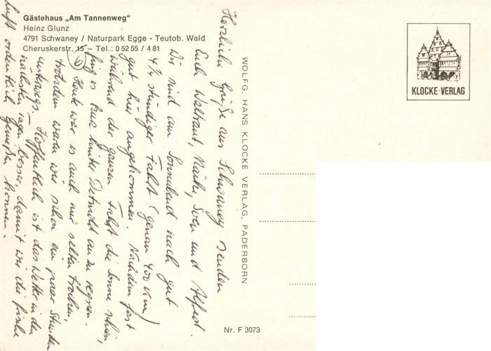 73905797 Schwaney Panorama Gaestehaus Am Tannenweg Gaststube postalisch nicht gelaufen Erhaltung siehe scans [FriedD77] KatCode: 11110005774004