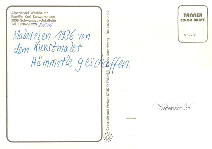 73615812 Schwangau Alpenhotel Weinbauer postalisch nicht gelaufen Erhaltung siehe scans [WerneD78] KatCode: 11110009777169