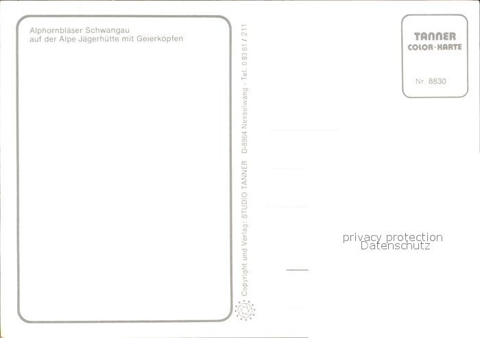 Schwangau Alphornblaeser Alpe Jaegerhuette mit Geierkoepfen Almvieh postalisch nicht gelaufen Erhaltung siehe scans