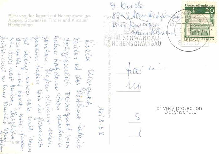 72796261 alte Postkarte Schwangau Alpsee Schwansee postalisch gelaufen Erhaltung siehe scans [NatalD47] KatCode: 11110009777169