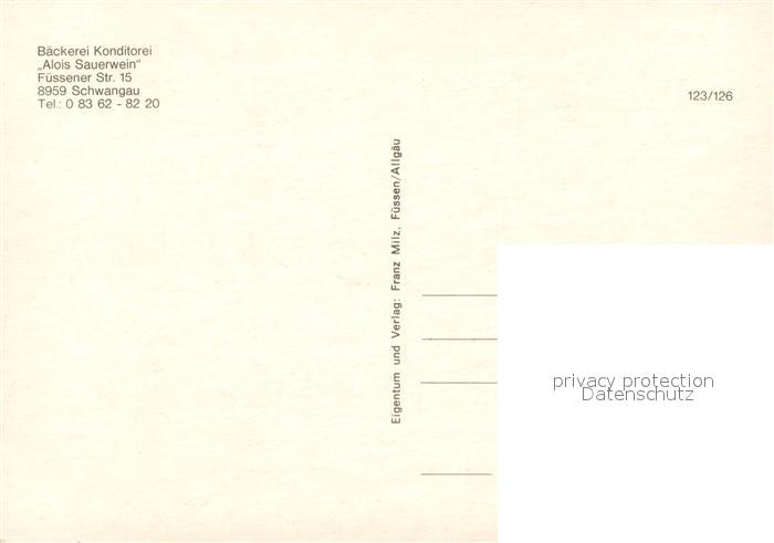 73615803 Schwangau Baeckerei Konditorei Alois Sauerwein postalisch nicht gelaufen Erhaltung siehe scans [WerneD78] KatCode: 11110009777169