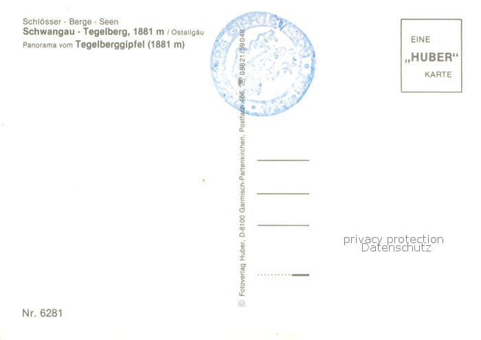 73701764 Schwangau Blick vom Tegelberggipfel Tannheimer Berge Alpsee Schwansee Fuessen Tegelberghaus Lech postalisch nicht gelaufen Erhaltung siehe scans [WerneD78] KatCode: 11110009777169