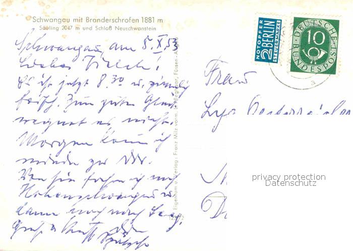 72776483 alte Postkarte Schwangau Branderschrofen Neuschwanstein Saeuling postalisch gelaufen Erhaltung siehe scans [KathaD81] KatCode: 11110009777169