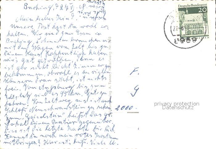 72217864 alte Postkarte Schwangau Brunnen Schloss Neuschwanstein postalisch gelaufen Erhaltung siehe scans KatCode: 11110009777169
