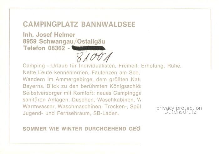 73340754 Schwangau Campingplatz am Bannwaldsee Bergbahn Alpenpanorama Schloss Fliegeraufnahme postalisch nicht gelaufen Werbekarte (keine Postkarte) Erhaltung siehe scans [FriedD77] KatCode: 11110009777169