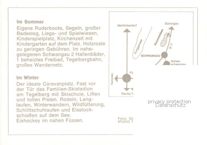 73340753 Schwangau Campingplatz am Bannwaldsee Winterlandschaft Bergbahn Alpenpanorama postalisch nicht gelaufen Werbekarte (keine Postkarte) Erhaltung siehe scans [FriedD77] KatCode: 11110009777169