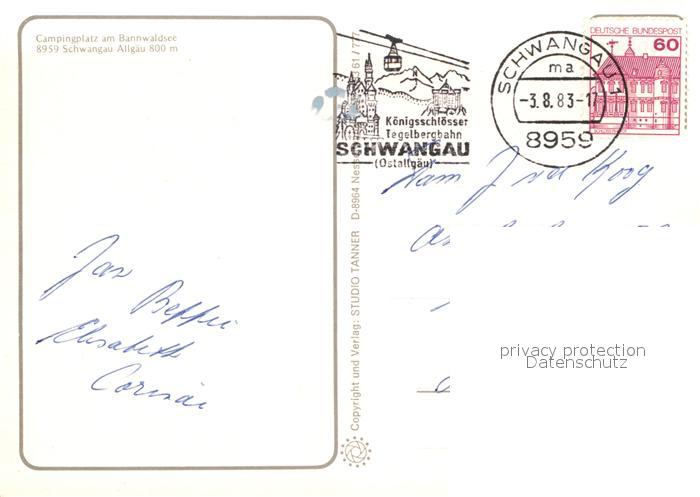 72930954 alte Postkarte Schwangau Campingplatz Bannwaldsee Panorama Seilbahn postalisch gelaufen Erhaltung siehe scans [WerneD78] KatCode: 11110009777169