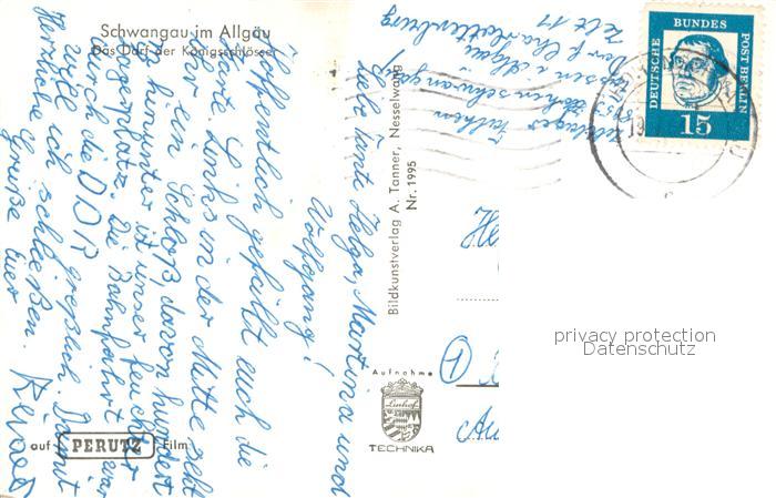 73734914 alte Postkarte Schwangau Das Dorf der Koenigsschloesser See Schloss Neuschwanstein Alpen Karikaturen postalisch gelaufen Erhaltung siehe scans [FriedD77] KatCode: 11110009777169