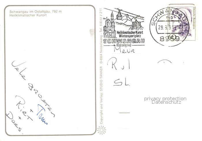 72935681 alte Postkarte Schwangau Dorf der Koenigsschloesser Kirche Schloss Neuschwanstein Alpen Kuh am Brunnen postalisch gelaufen Erhaltung siehe scans [FriedD77] KatCode: 11110009777169