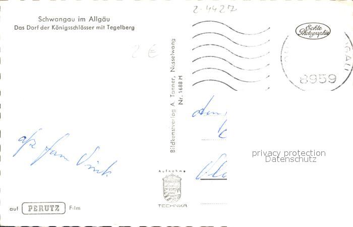 72475699 alte Postkarte Schwangau Dorf der Koenigsschloesser mit Tegelberg postalisch gelaufen Erhaltung siehe scans KatCode: 11110009777169