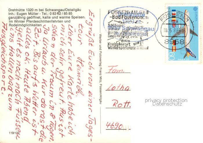 73758816 alte Postkarte Schwangau Drehhuette postalisch gelaufen Erhaltung siehe scans [FriedD77] KatCode: 11110009777169