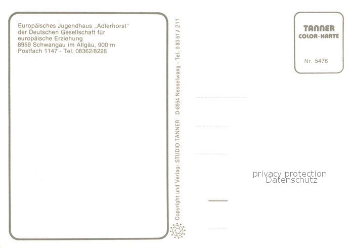 73614927 Schwangau Europaeisches Jugendhaus Adlerhorst postalisch nicht gelaufen Erhaltung siehe scans [WerneD78] KatCode: 11110009777169